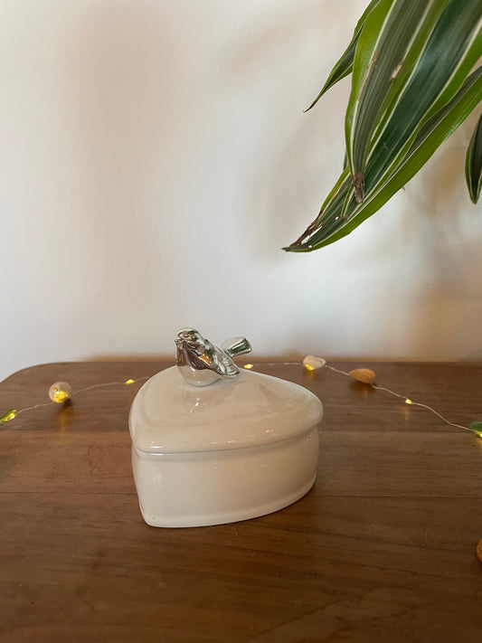 Boîte avec petit oiseau argenté