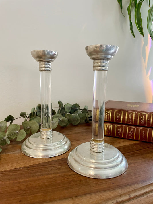 Paire de bougeoirs en lucite et métal