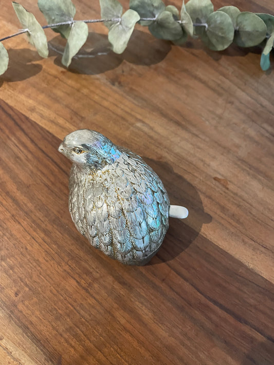 Ancien moutardier caille en métal argenté