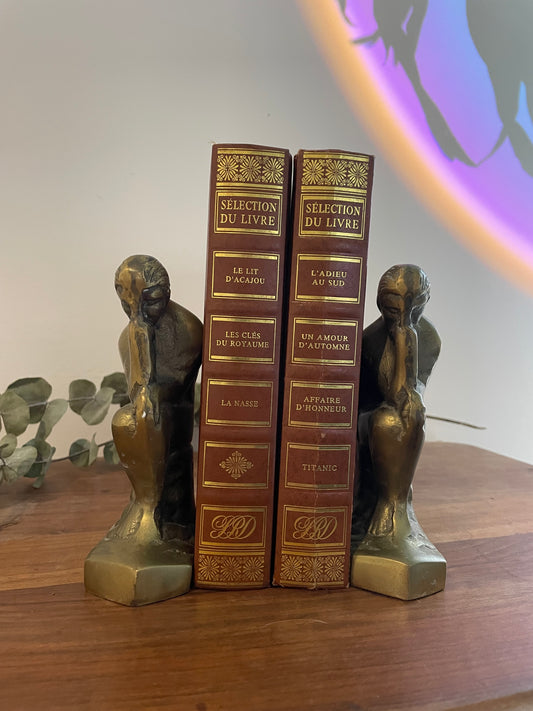 Paire de serre-livres en laiton « Penseur de Rodin »