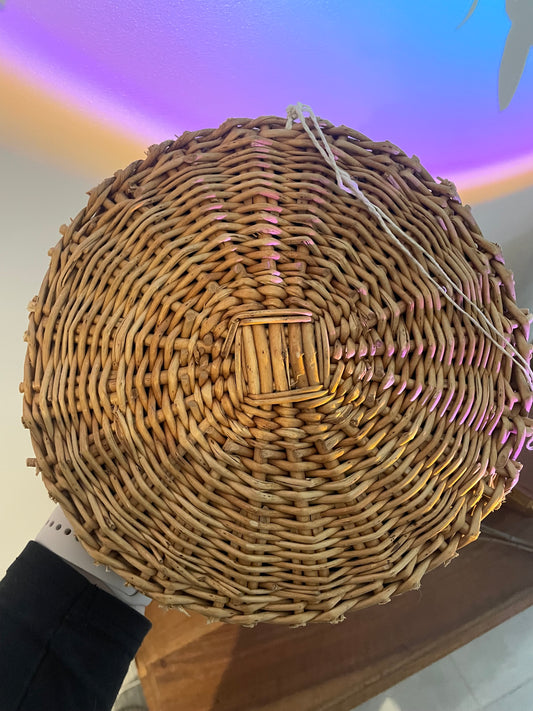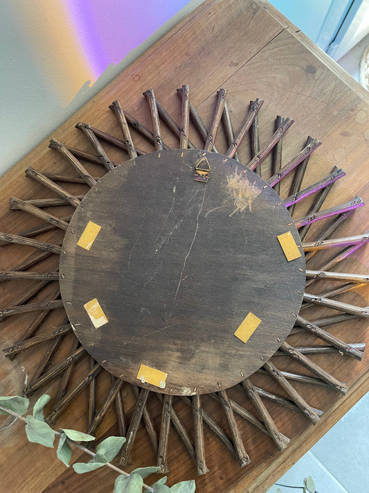 Miroir vintage rond en rotin