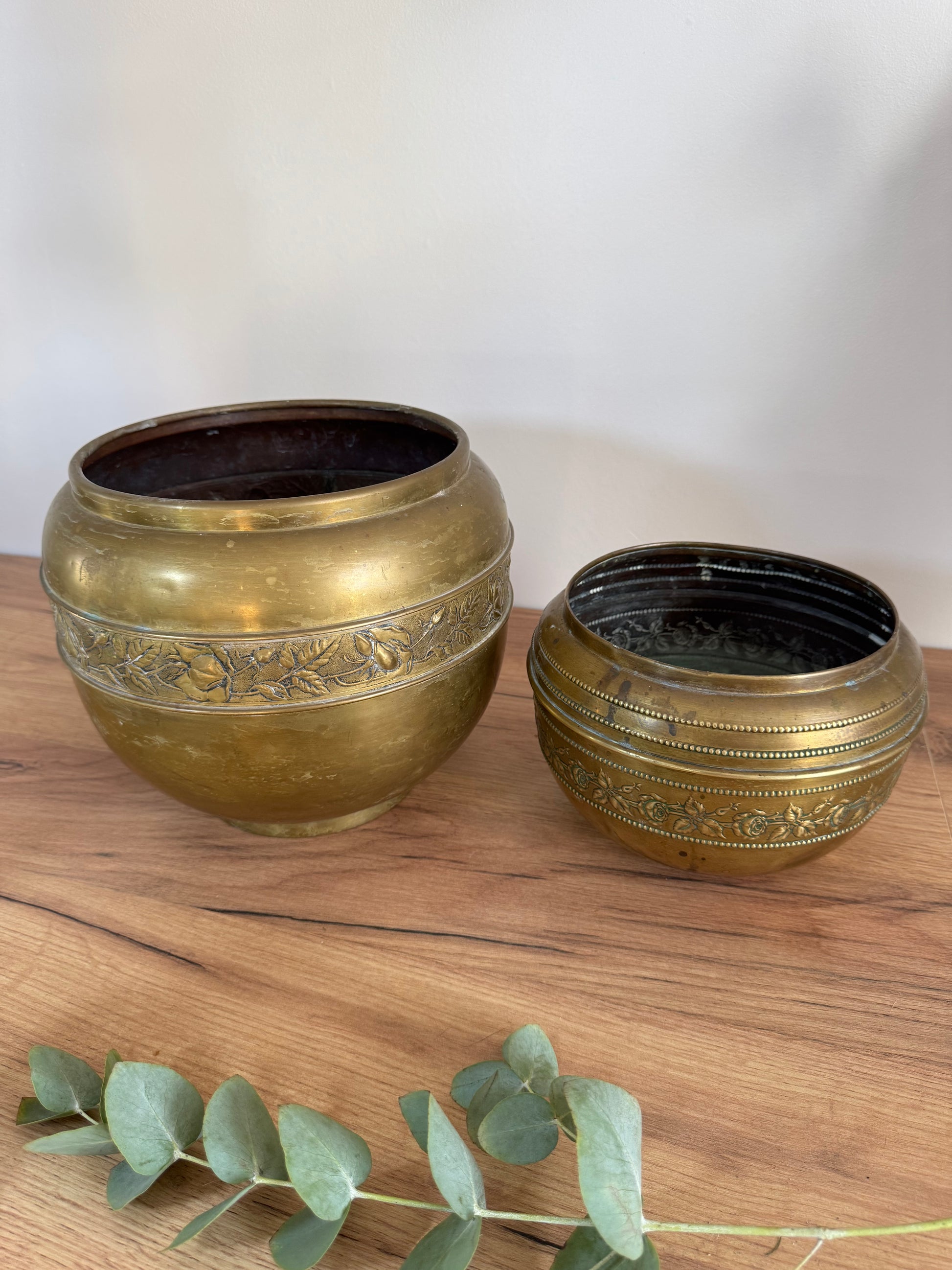 Charmant duo de cache-pots en laiton, parfait pour apporter une touche chaleureuse et lumineuse à votre intérieur 🤎