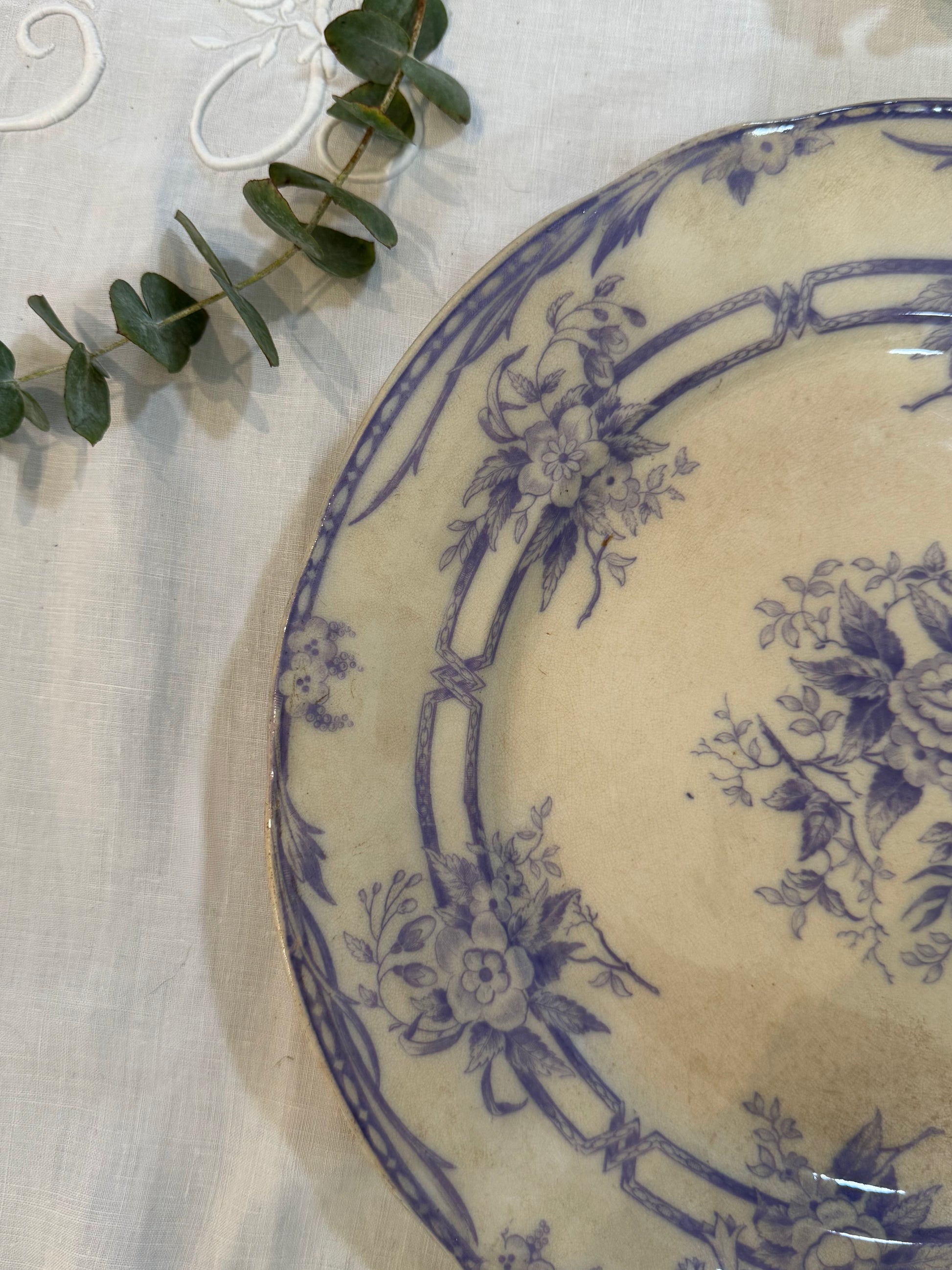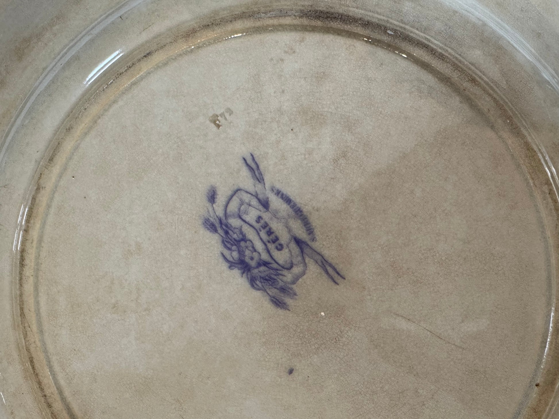 Magnifique grand plat ancien Sarreguemines, modèle Cérès, dans une élégante association de crème et violet.
