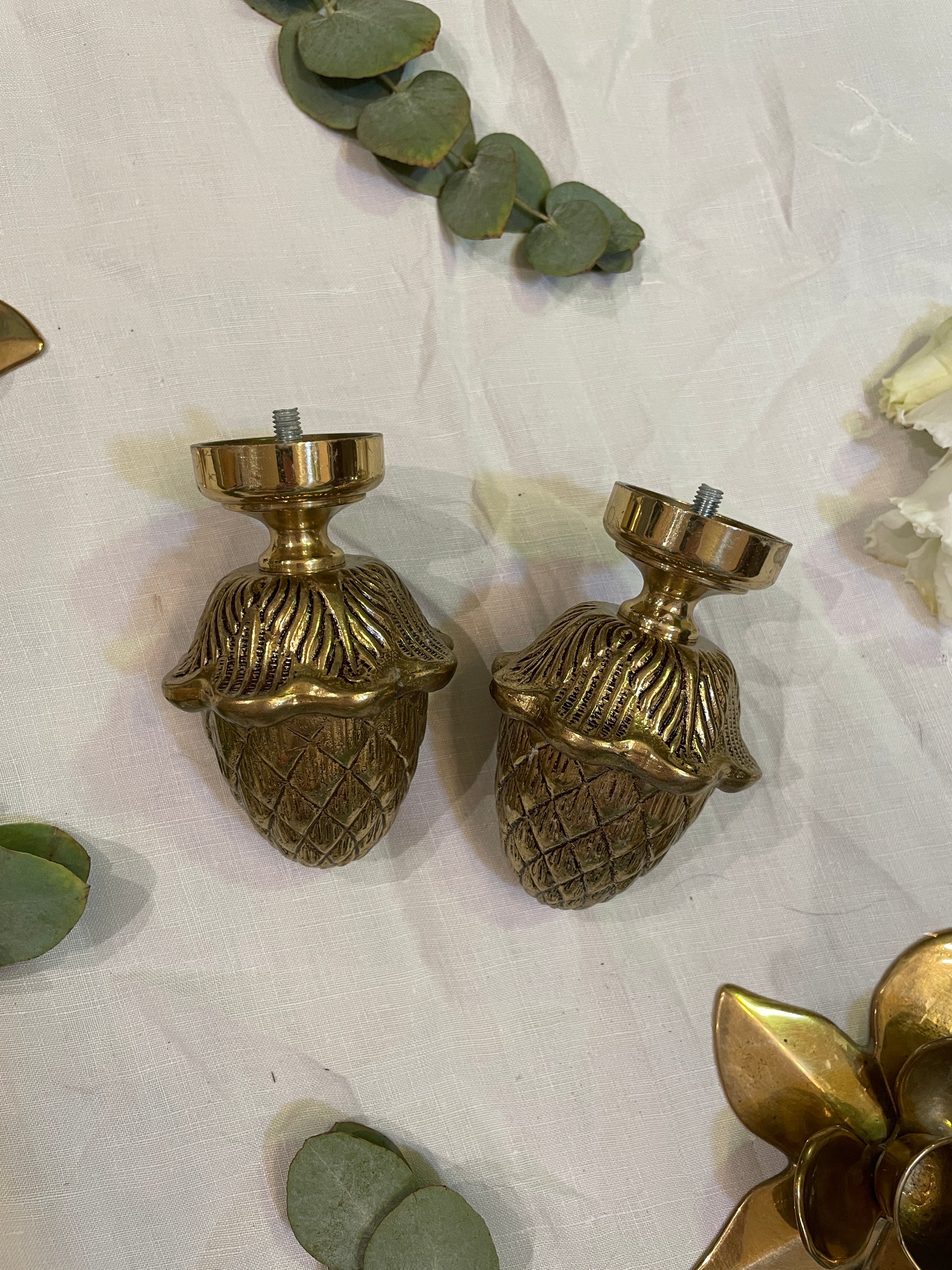 Élégante paire d’ornements en bronze en forme de pomme de pin 🍂