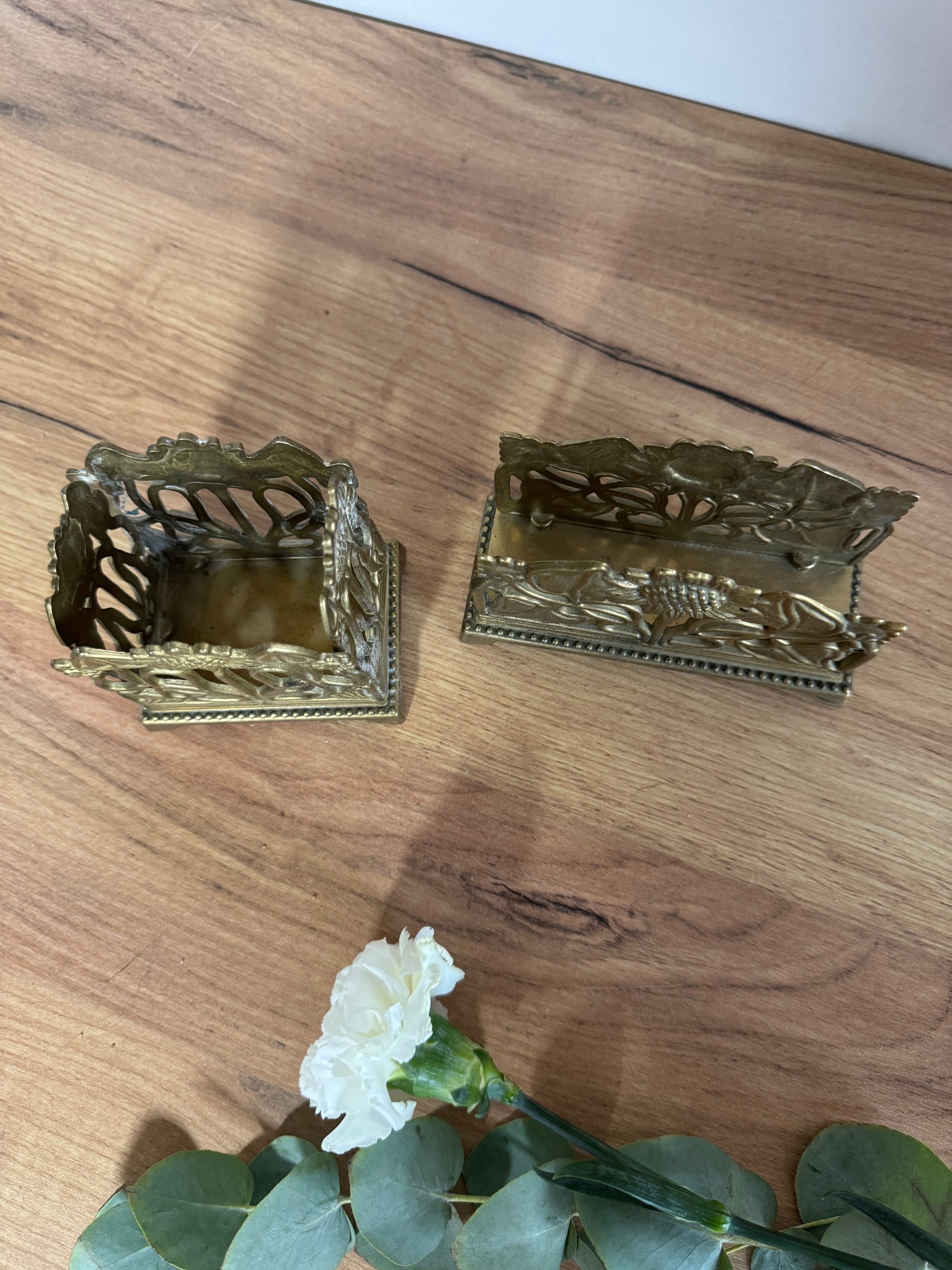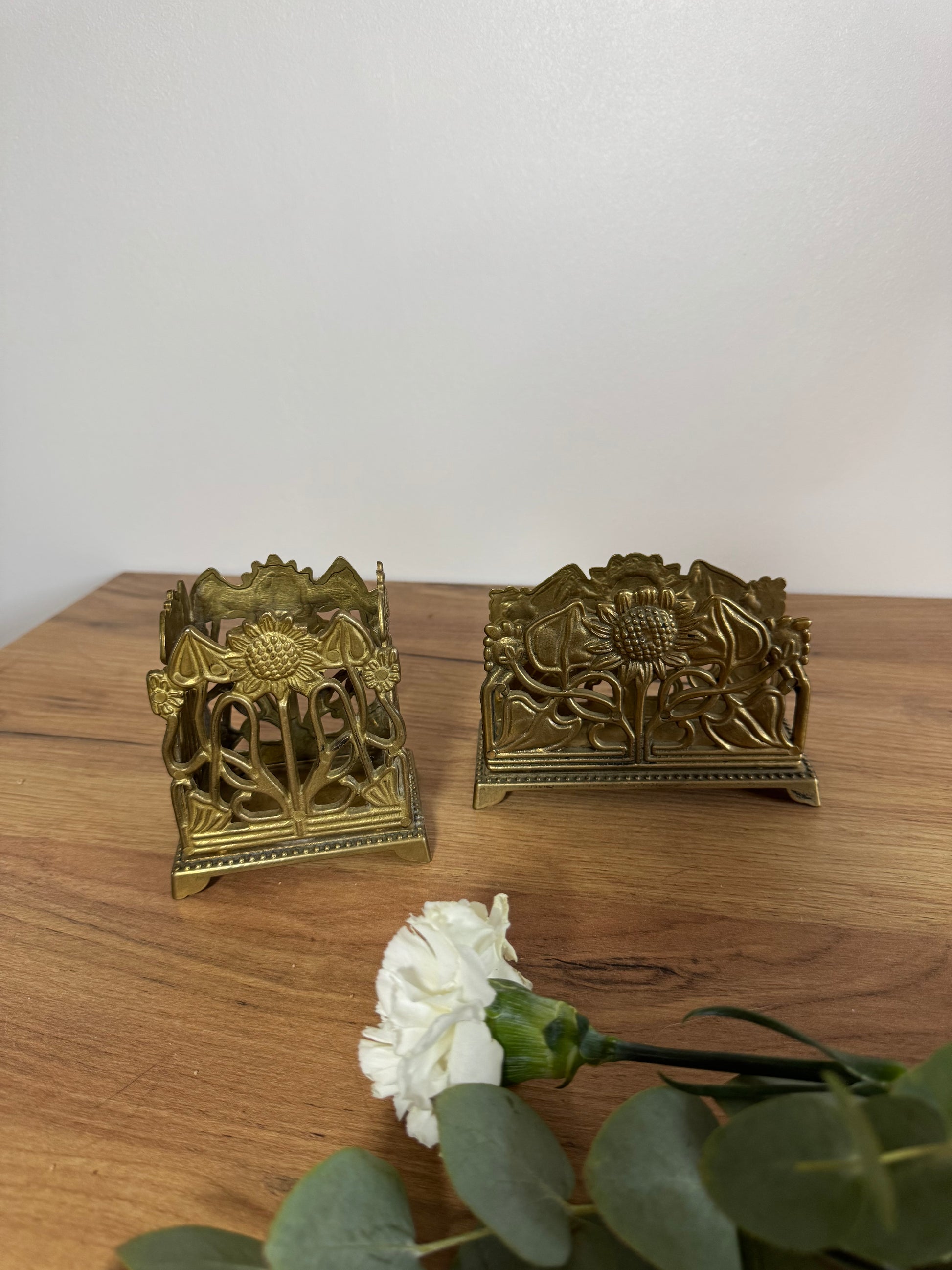 Magnifique porte-lettres ou courrier et porte-crayon en laiton, motif tournesols, style Art Nouveau 🌻