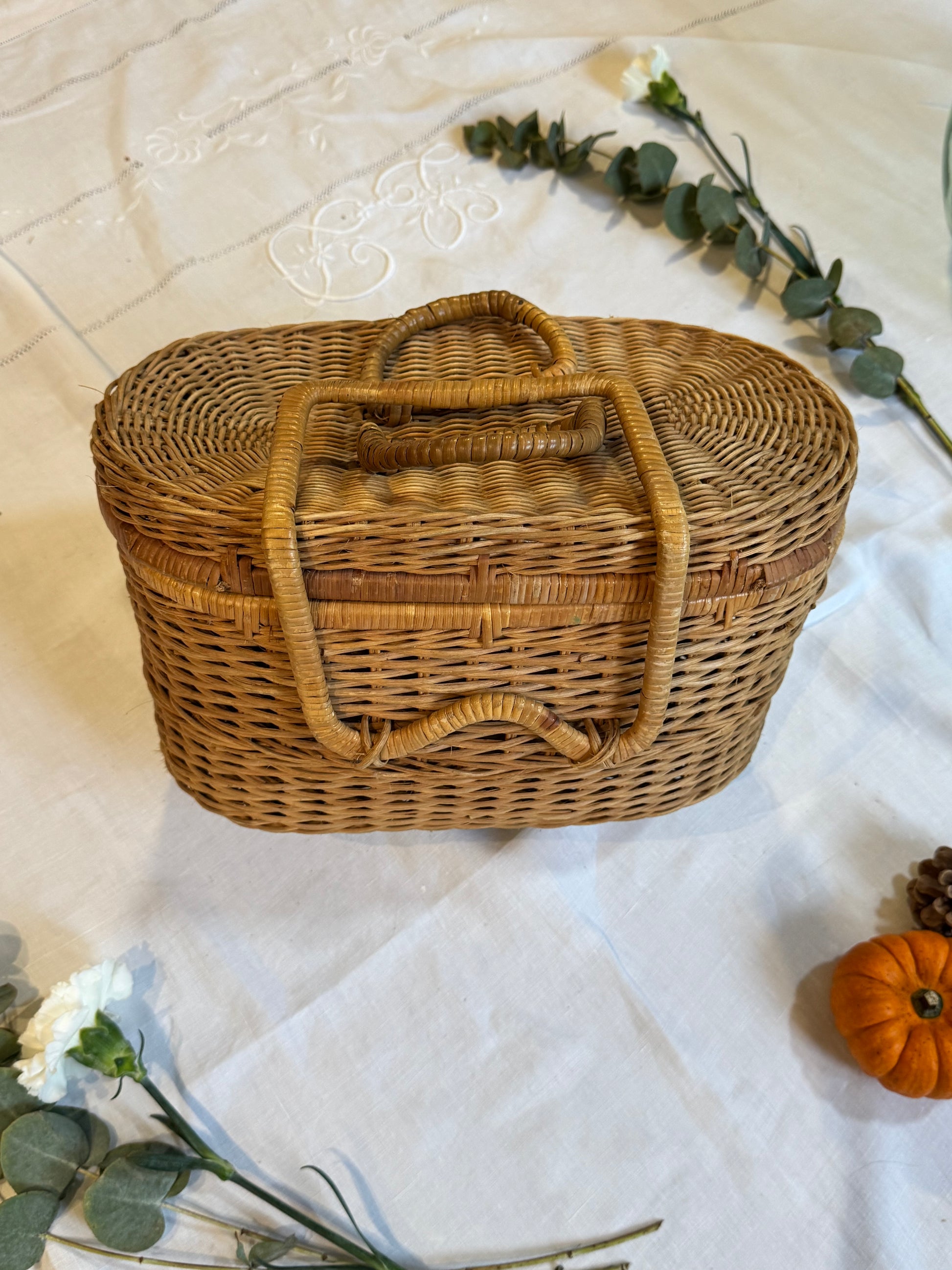 Un bel objet ancien au tressage naturel, à détourner en panier de rangement ou en élément décoratif.